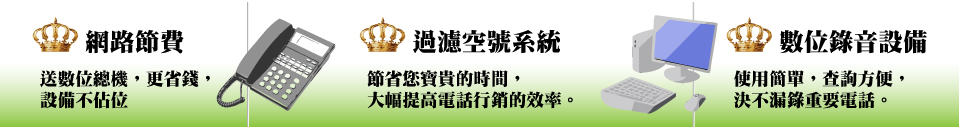 鉅崴興業股份有限公司提遠傳節費電話系統、遠傳070網路電話節費、數位錄音卡及電話行銷利器過濾空號系統。 台灣排行榜 Rank.tw 交換連結 小遊戲 展新清潔公司